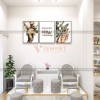 Hạng mục đầu tiên phải kể đến trong thiết kế tiệm nail phun xăm này đó chính là phần biển bảng. Với tấm biển lớn phía trên được gia cố bằng khung sắt chắc chắn cùng nền Alu chịu thời tiết ngoài trời. Bộ chữ trên tấm biển được làm bằng chất liệu mặt alu vàng gương cùng mica phát sáng. Một bộ tranh bằng khung sắt mạ kẽm bọc bạc mịn in UV ngoài trời cho cột giữa để trang trí và gây ấn tượng với người đi đường dễ hơn.