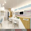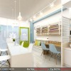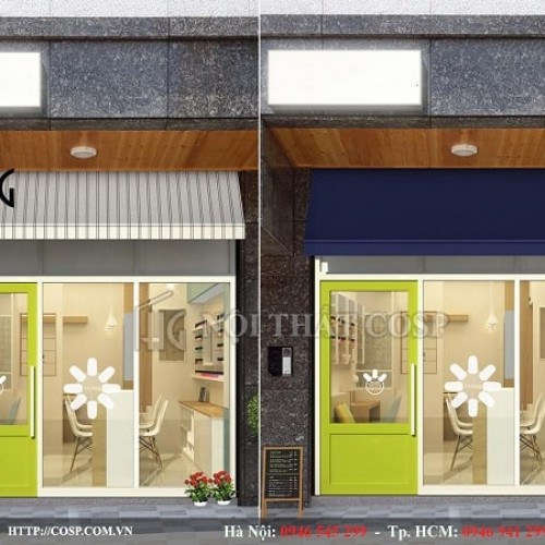 Đáp ứng yêu cầu của chị Minh, chúng tôi lựa chọn gam màu xanh- trắng làm tone màu chủ đạo. Ngoài ra để tránh sự nhàm chán và tạo ra sự hài hòa sắc màu giữa cửa ra vào và nội thất bên trong, các kiến trúc sư đã khéo léo chọn gam màu xanh lá mạ cho những đồ vật nhỏ trong tiệm.