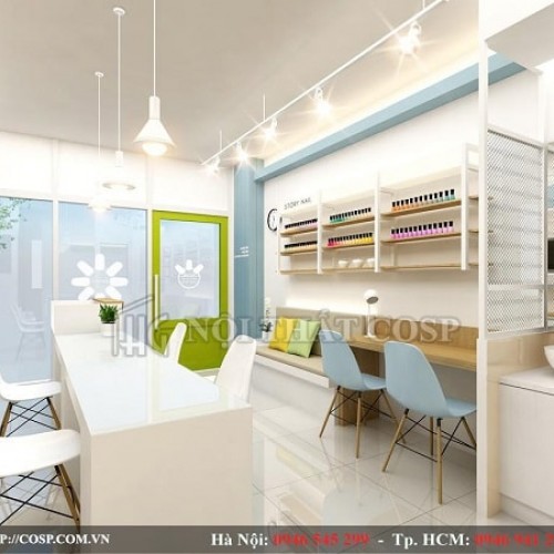 Trong những năm gần đây, làm nail trở thành dịch vụ làm đẹp được nhiều chị em phụ nữ rất ưa chuộng. Đối với những ai sắp và đang có ý định mở cơ sở kinh doanh thì thiết kế cửa hàng luôn là vấn đề nhận được sự quan tâm nhiều nhất. Gần đây chị Minh - một chủ cơ sở nail đã tìm đến Cosp.com.vn với mong muốn có một thiết kế tiệm nail theo phong cách thanh lịch và nhẹ nhàng.