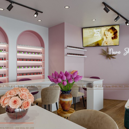 Thiết kế tiệm nail Name Shop ngọt ngào, dễ thương