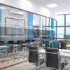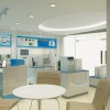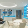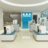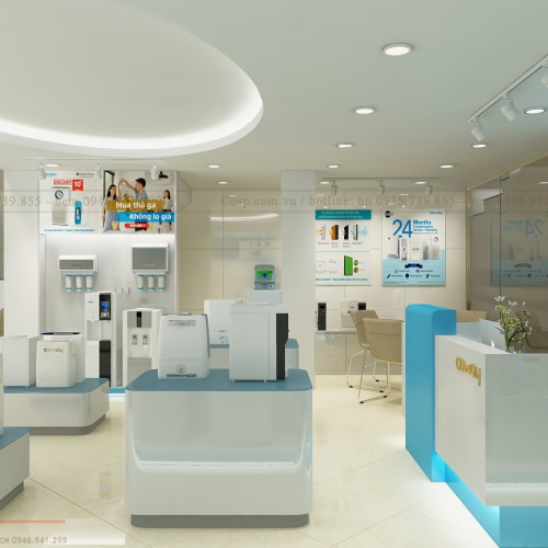 Tại đây chúng tôi đã sử dụng 2 dãy kệ trưng bày với chiều cao 400 cm và 750 cm ở giữa không gian văn phòng nhằm trưng bày những sản phẩm hot nhất. Kệ trưng bày được thiết kế theo hình hộp có khung cánh gỗ MDF chống ẩm cốt Malaysia sơn inchem ( hoặc phủ Melamin chống chày xước). Bề mặt được phủ lớp kính cường lực 8mm mài vát cạnh càng làm nổi bật sản phẩm. Ngoài ra, 2 bên tường là dãy kệ trưng bày thấp có đèn led mica ở dưới đáy trông vô cùng sang trọng.