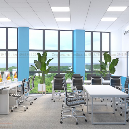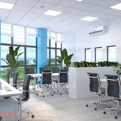 Khu vực này được thiết kế và thi công văn phòng rất đơn giản, không cầu kỳ như những khu vực khác. Các tầng làm việc đều được bố trí bàn làm việc khung sắt hộp sơn tĩnh điện được làm từ gỗ MDF chống ẩm cốt Malaysia sơn inchem ( hoặc phủ Melamin chống chày xước) kết hợp ghế xoay bọc da tạo môi trường làm việc thoải mái cho nhân viên.