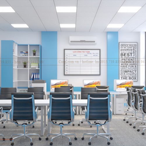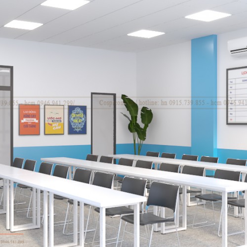 Đây chính là nơi diễn ra các cuộc họp hay những buổi khen thưởng kỉ luật của công ty. Nên chúng tôi sử dụng những chiếc bàn làm việc xếp dài lại và hàng ghế chân tĩnh nhằm đem lại không khí trang trọng, lịch sự.