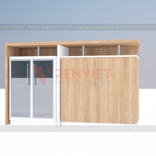 Tương như các mẫu thiết kế nội thất văn phòng thông thường, chúng tôi sử dụng phần lớn gỗ công nghiệp Laminate màu nâu nhẹ có thêm họa tiết vân gỗ. Dù giá thành có nhỉnh hơn các chất liệu tương đương, tuy nhiên với Laminate, chúng được đội ngũ kỹ thuật xử lý nên sở hữu đặc tính chống thấm nước và ẩm mốc, dễ lau chùi.