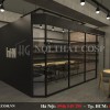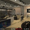 Toàn bộ hệ thống tường được ốp đá mịn màu ghi xám vô cùng độc đáo, rất hiếm khi được sử dụng trong không gian văn phòng. Tổng thể không gian được chia ra nhiều không gian khác nhau và được ngăn cách bởi khung gỗ MDF kết hợp với tấm kính cường lực mờ giúp đảm bảo được tính độc lập và riêng tư cho mỗi không gian.