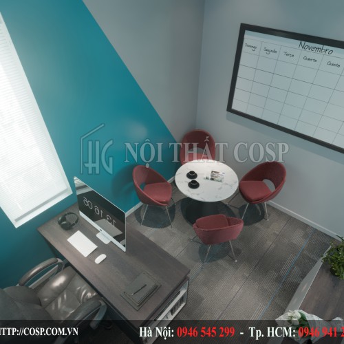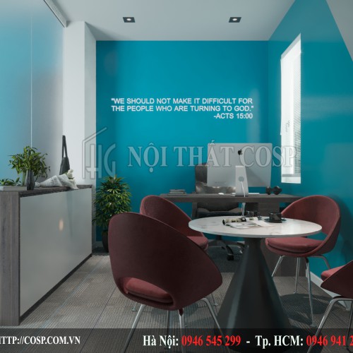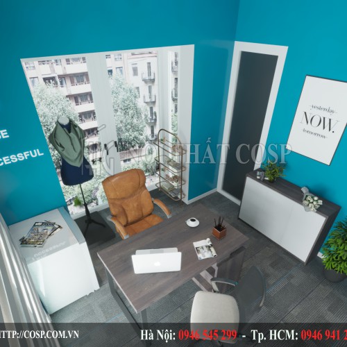 Đến với công ty nội thất COSP, Chị Trang mong muốn có cho mình một không gian văn phòng hiện đại và trẻ trung với gam màu xanh nổi bật và đầy sức sống.