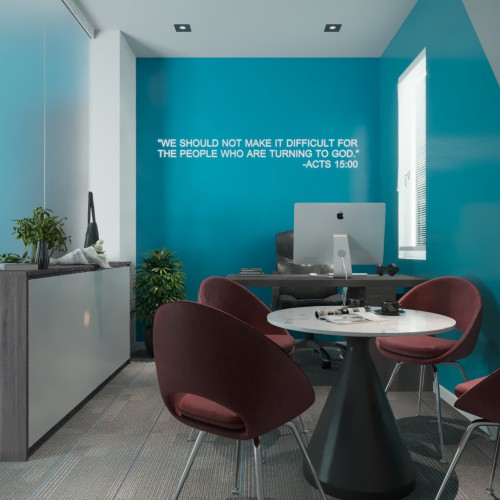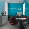 Lựa chọn phong cách thiết kế văn phòng hiện đại và trẻ trung, chúng tôi sử dụng gam màu xanh dương mang lại sự phóng khoáng và tràn đầy sức sống. Để cân bằng lại màu sắc cho không gian văn phòng, chúng tôi đan xen giữa hai màu sắc xanh và trắng để giúp văn phòng có nét hài hòa hơn.