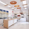 Không gian thoáng đãng kết hợp với màu trắng tinh khôi kèm theo đó là những bức trang có họa tiết bắt mắt. Bước vào cửa có thể thấy ngay tên thương hiệu của công ty chị Ngọc Mai.