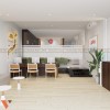Ngay khi bước vào, không gian lễ tân được bố trí gọn gàng với quầy tiếp tân và hàng ghế chờ thoải mái.