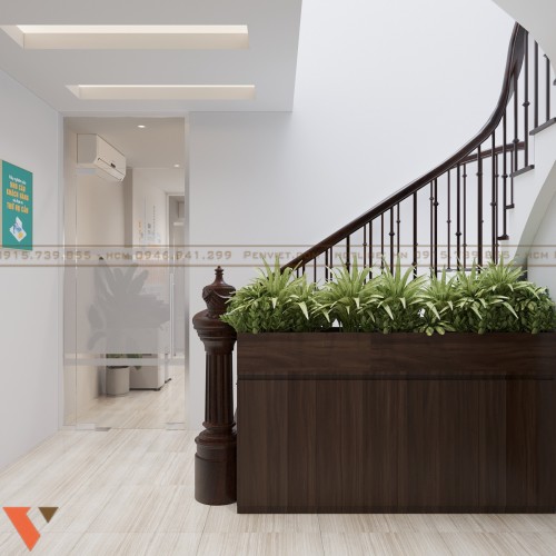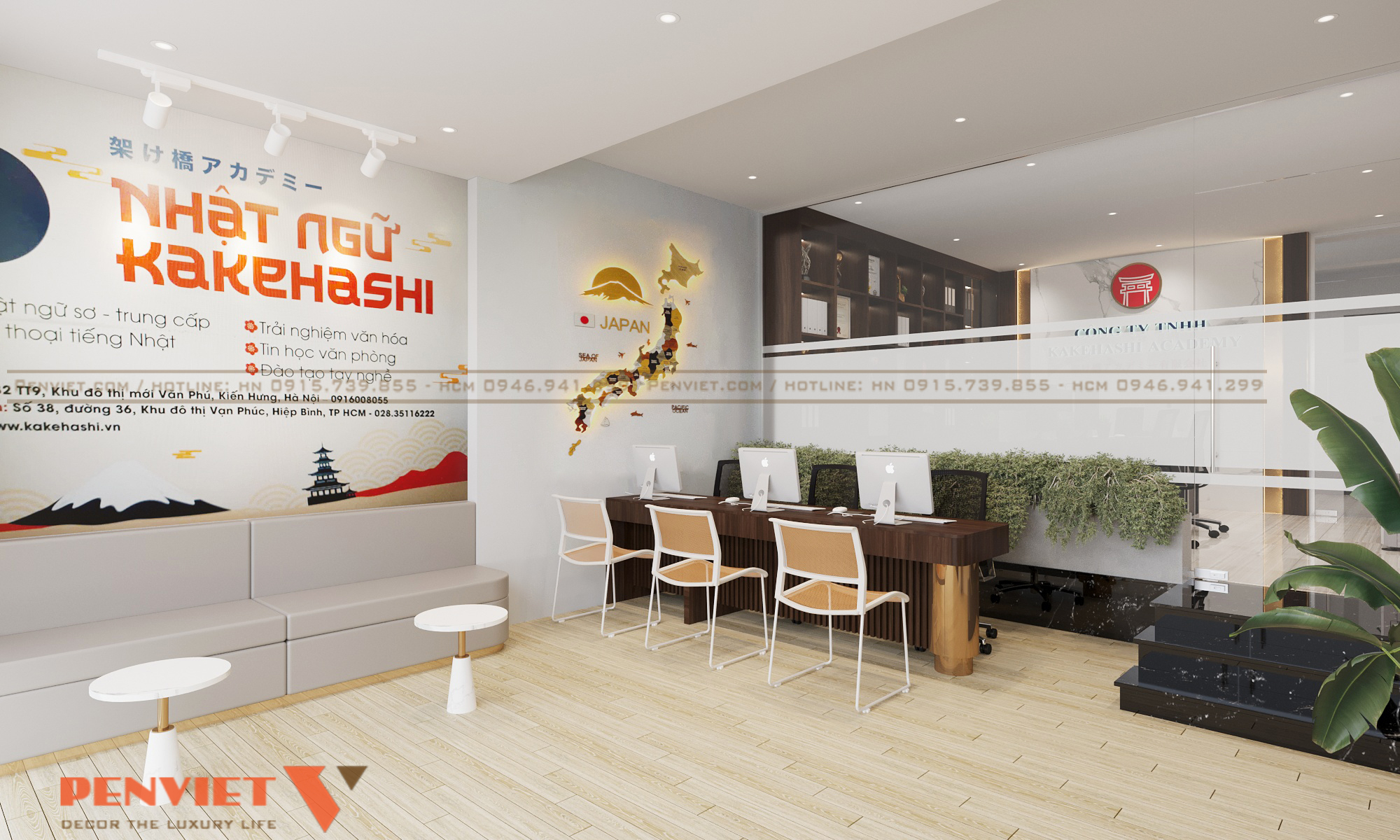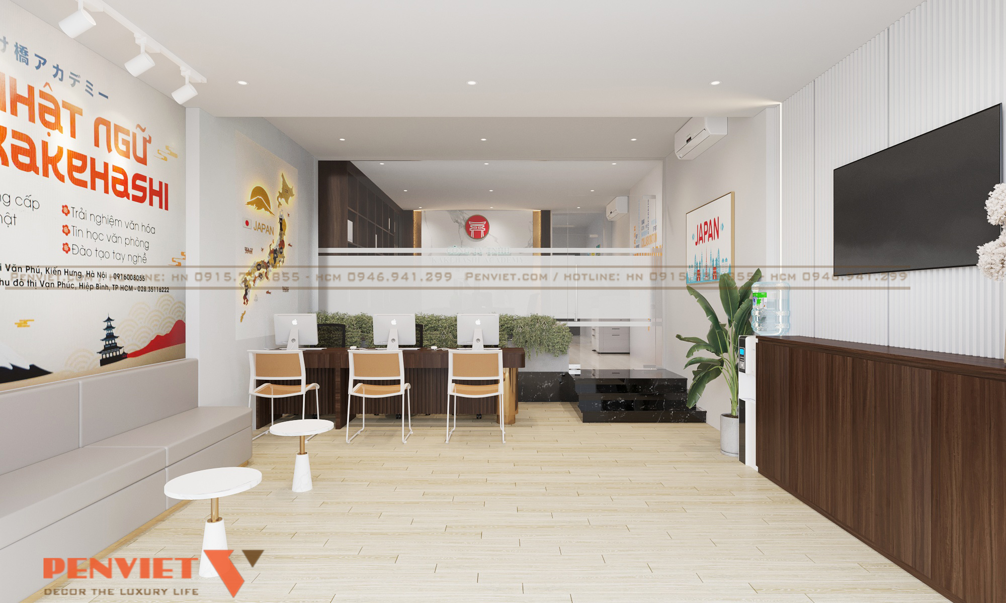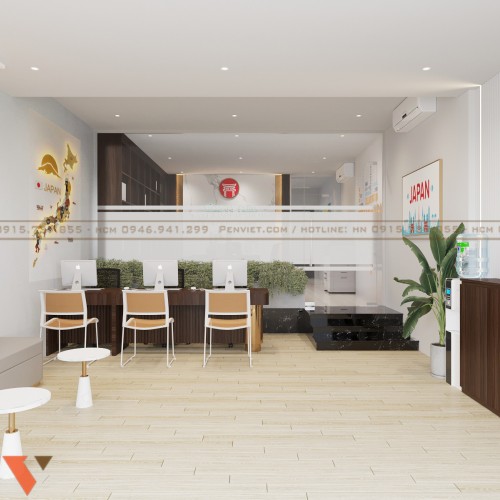 - Tối ưu diện tích 45m2 nhưng vẫn đảm bảo đầy đủ công năng như lễ tân, khu làm việc, phòng giám đốc.