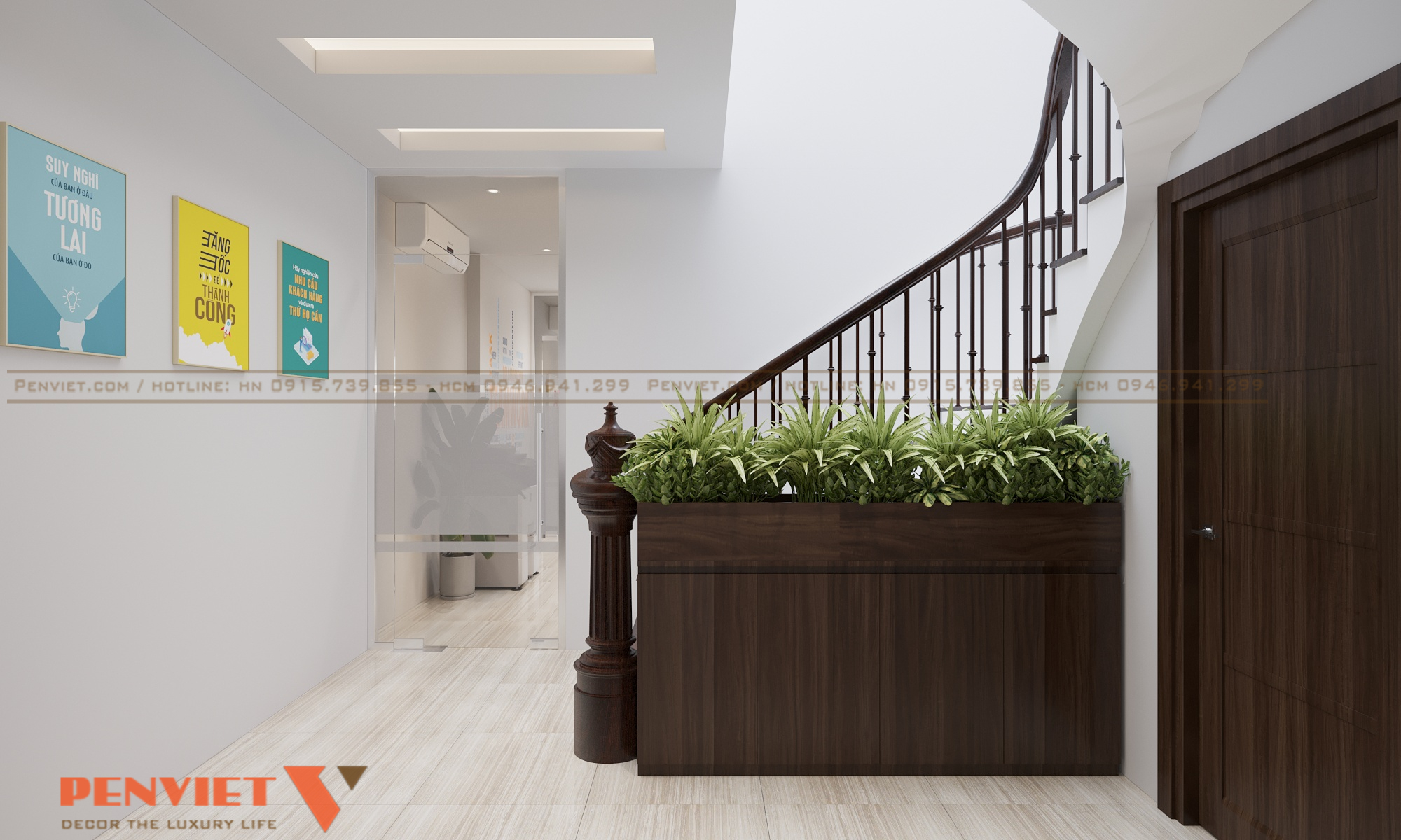 - Truyền cảm hứng thương hiệu: Các mảng tường được nhấn bằng tranh, chữ và biểu tượng phù hợp với lĩnh vực hoạt động của doanh nghiệp.