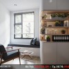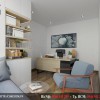 Khu vực cửa sổ chúng tôi thiết kế một chiếc ghế salong dài màu xám, vừa làm ghế vừa làm giường trên khung gạch trắng xây nổi. Chung tôi sử dụng bàn kính trong nhỏ nhắn và một ghế gỗ nhỏ với phần đệm xám để làm một bộ bàn ghế đọc sách, mang lại cảm giác thư thái, nhẹ nhàng.