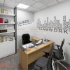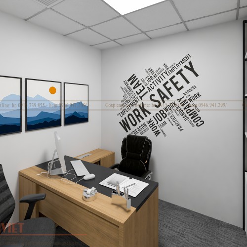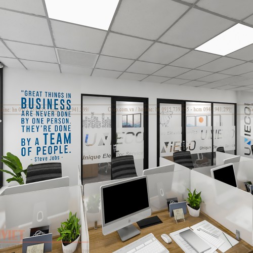 Trước khi đi vào thiết kế từng phòng thì chúng tôi đã sử dụng vách thạch cao để phân chia rõ ràng các phòng, sơn dulux, dán decal ... và thiết kế hệ thống điện trong toàn bộ văn phòng. Phần khung cơ bản đã thiết kế xong xuôi, giờ thì chúng ta đi vào phòng làm việc nhé.