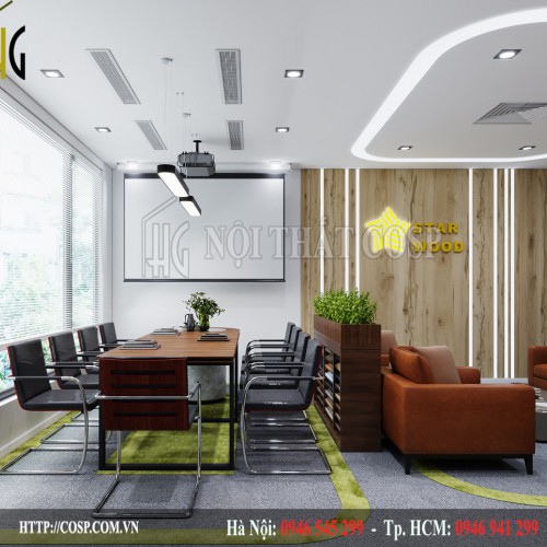 Mẫu thiết kế văn phòng Star Wood - Gia Lâm có hai hạng mục chính là phòng họp và phòng làm việc của nhân viên.