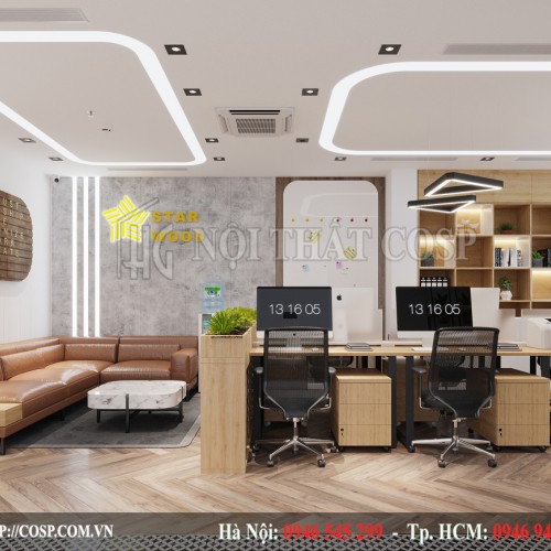 Văn phòng Star Wood - Gia Lâm được thiết kế nội thất bởi Nội thất COSP sau khi anh Hùng đưa ra các yêu cầu về tính thẩm mĩ. Vận dụng tốt kinh nghiệm lâu năm của mình cùng đội ngũ thiết kế chuyên nghiệp, chúng tôi đã mang đến một không gian vô cùng sang trọng, lịch sự và gọn gàng. Cụ thể ra sao, mời các bạn cùng chúng tôi tìm hiểu dự án thiết kế văn phòng Star Wood - Gia Lâm qua bài viết dưới đây nhé!