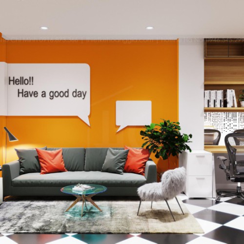 Thiết kế văn phòng theo tông màu tươi sáng đang dần trở thành xu hướng thiết kế được nhiều công ty tìm kiếm. Màu cam trong thiết kế nội thất là tông màu mang lại nhiệt huyết và sự tươi trẻ cho không gian.
