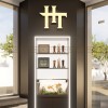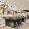 Tông màu trắng đen chủ đạo mang lại cảm giác cao cấp và sạch sẽ. Logo và slogan được đặt tại vị trí trung tâm, dễ nhận diện từ xa. Hệ đèn trần âm và đèn hắt giúp không gian sáng đều, không gây chói. Thiết kế kính và vật liệu phản chiếu tăng chiều sâu cho cửa hàng.