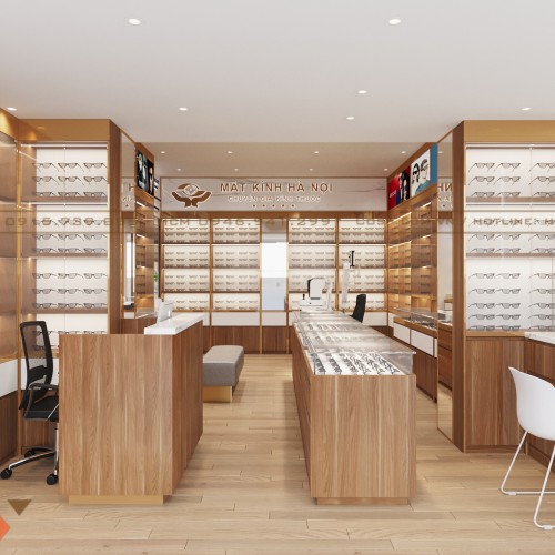 Trong ngành bán lẻ hiện nay, không gian trưng bày đóng vai trò vô cùng quan trọng trong việc thu hút khách hàng và tạo dựng niềm tin thương hiệu. Với mặt hàng đặc thù như kính mắt, việc thiết kế nội thất không chỉ đảm bảo yếu tố thẩm mỹ mà còn phải khoa học, tiện dụng, hỗ trợ tối đa cho quá trình tư vấn, chọn kính và đo mắt. Dự án thiết kế cửa hàng mắt kính Hà Nội do PenViet thực hiện có sự kết hợp hài hòa giữa công năng, thẩm mỹ và vật liệu cao cấp như hệ tủ kệ gỗ MDF cốt xanh chống ẩm phủ melamine sang trọng.