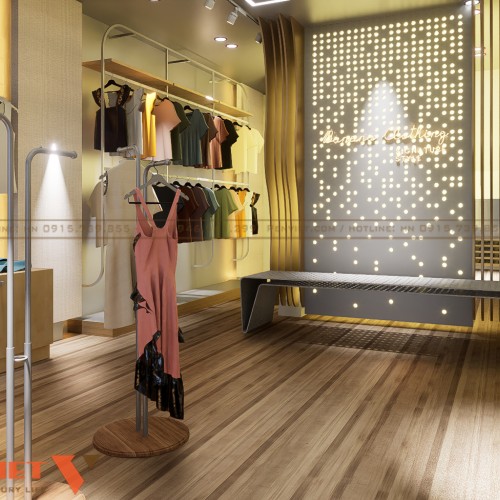 Với tông màu hiện đại, không gian được chia thành các khu vực chức năng khoa học, từ khu trưng bày quần áo, khu phụ kiện, khu nội y đến quầy thanh toán. Mỗi chi tiết đều được tính toán kỹ lưỡng để đảm bảo tính thẩm mỹ, công năng và phong cách nhận diện thương hiệu riêng biệt cho Banana Clothing.