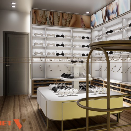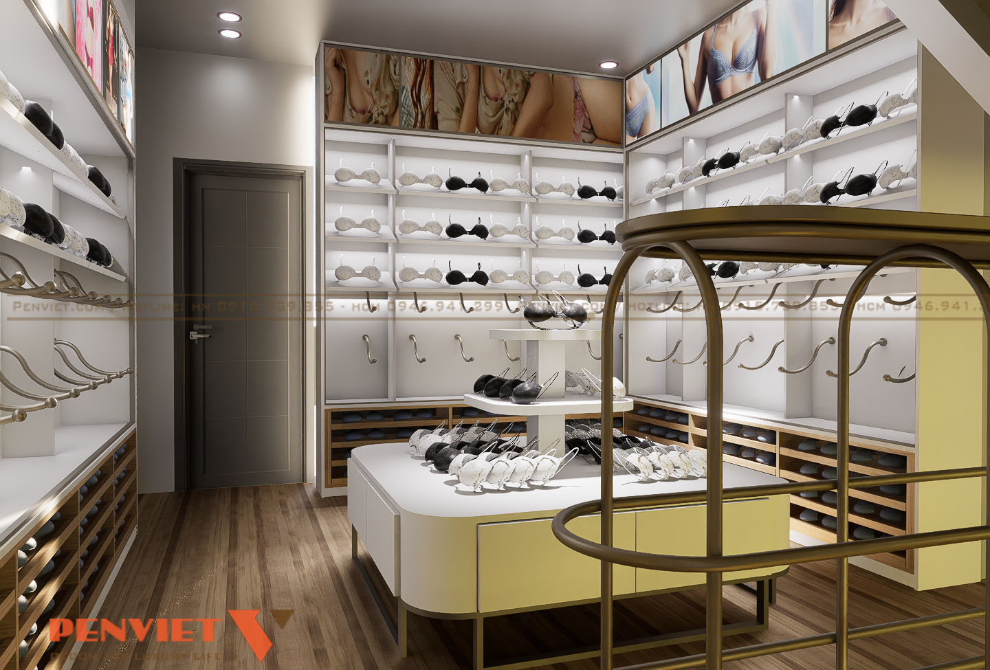 Một trong những điểm nhấn nổi bật của Banana Clothing là khu vực nội y được đầu tư thiết kế riêng biệt. Không gian này mang lại sự tinh tế và riêng tư, phù hợp với đặc thù sản phẩm.