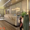 Quầy thanh toán đặt ở cuối không gian, sử dụng chất liệu đá kết hợp gỗ, mang lại sự vững chắc và sang trọng. Bề mặt quầy rộng, tạo sự thuận tiện cho việc gói hàng và thanh toán.