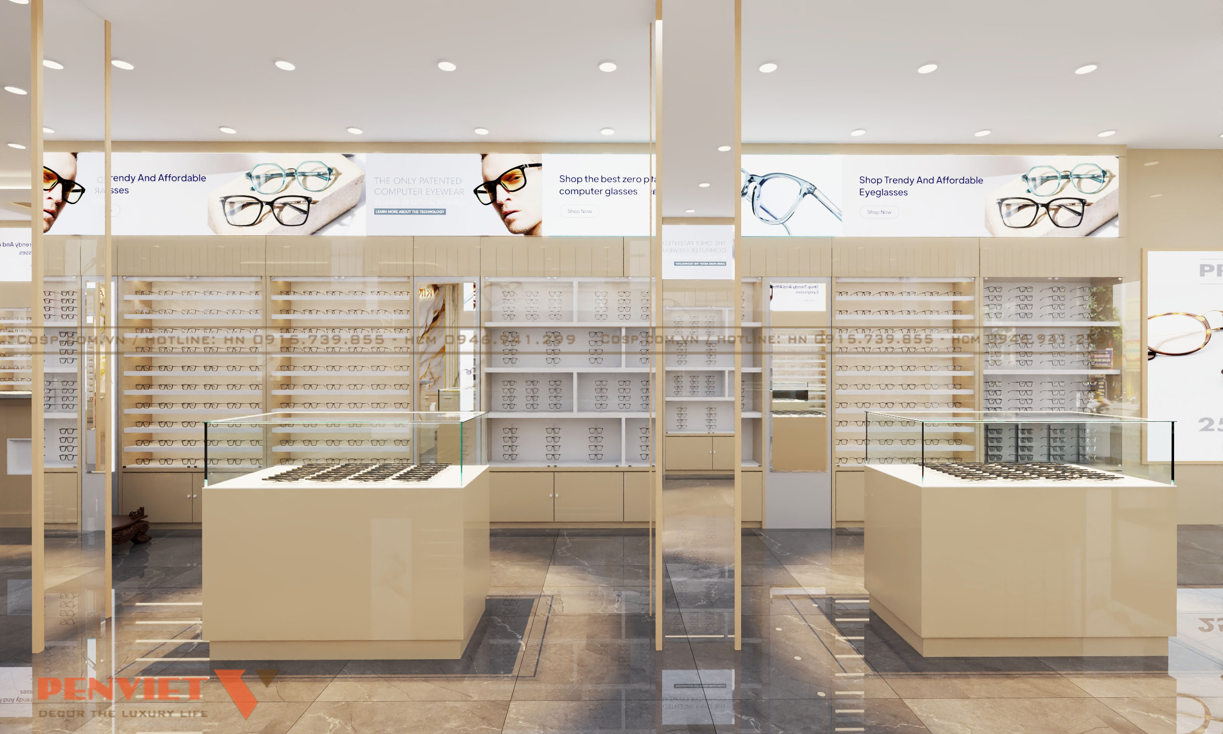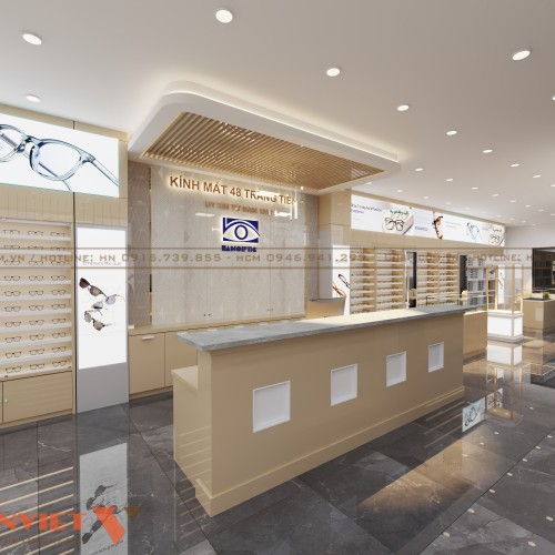 Thiết kế shop kính mắt 48 Tràng Tiền thể hiện rõ nét phong cách hiện đại và đẳng cấp. Đây chắc chắn là một điểm đến lý tưởng cho những ai đang tìm kiếm các sản phẩm kính mắt chất lượng cao. Nếu bạn muốn sở hữu cửa tiệm ấn tượng như vậy để tăng hiệu quả kinh doanh, hãy liên hệ PenViet ngay hôm nay.