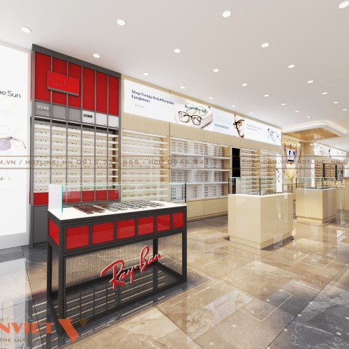 Ngoài các mẫu kệ sát tường thì chúng tôi còn tư vấn khách dùng các mẫu kệ chiều cao tầm trung cho khu vực giữa trung tâm. Chiều cao vừa phải giúp người xem dễ nhìn ngắm các sản phẩm kính mắt mà mình yêu thích.
