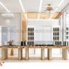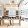 Hệ thống đèn LED âm trần tại khu vực trung tâm không chỉ chiếu sáng không gian mà còn tạo sự ấm áp. Ánh sáng vàng dịu nhẹ kết hợp với ánh sáng trắng của các tủ kính rất cuốn hút.