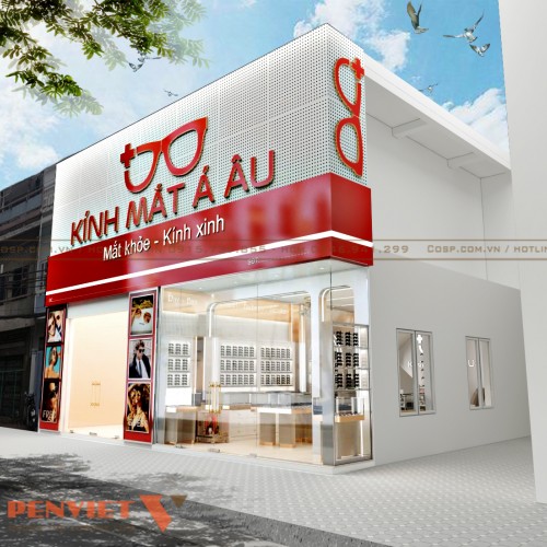 Thiết kế tiệm kính mắt Á Âu được các kiến trúc sư PenViet đầu tư tỉ mỉ với phong cách hiện đại. Các chi tiết từ biển bảng quảng cáo đến hệ quầy kệ đều được sắp xếp kỹ lưỡng mang đến diện mạo mới mẻ. Nếu quý khách có nhu cầu thiết kế nội thất hãy liên hệ PenViet ngay hôm nay.
