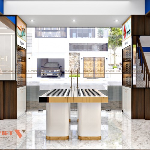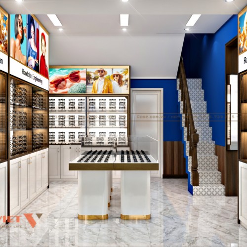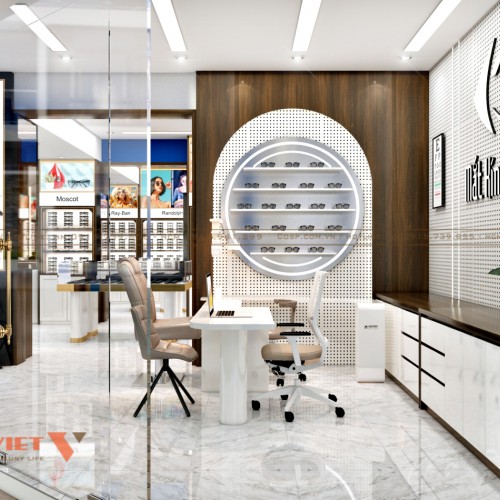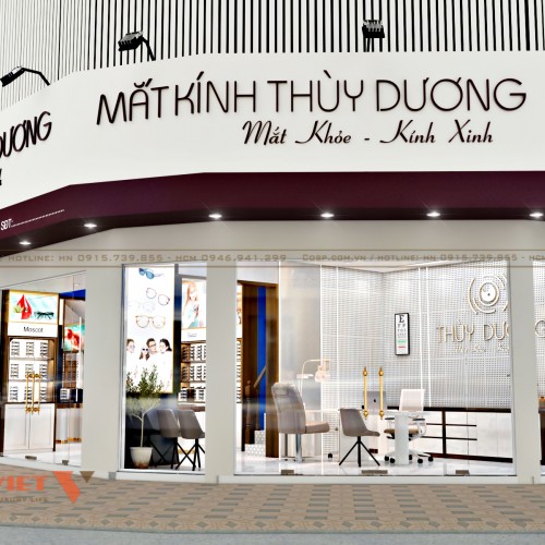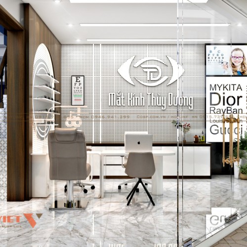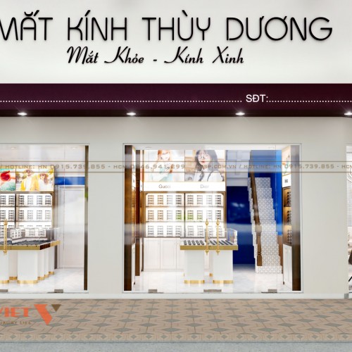 Phương án thiết kế shop mắt kính Thùy Dương nổi bật với các chi tiết trang trí hài hòa đáp ứng công năng sử dụng và tính thẩm mỹ. Mỗi khu vực trong cửa hàng đều được chăm chút kỹ lưỡng tạo trải nghiệm mua sắm cho quý khách hàng. Từ biển hiệu ngoại thất ấn tượng đến khu vực trưng bày mắt kính gọn gàng đem đến sự hài lòng cho chủ đầu tư để xây dựng thương hiệu.