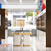 Bố cục nội thất trong không gian shop ưu tiên sự thoải mái quý khách hàng. Sự kết hợp giữa vách kính và điểm nhấn gỗ tăng sự thân thiện và hiện đại. Hơn nữa, hệ thống chiếu sáng với đèn LED được bố trí khéo léo quanh các kệ trưng bày và trần nhà đảm bảo mọi khu vực được chiếu sáng tốt.