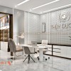 Điểm đặc biệt trong khu vực này là vách logo, nơi thương hiệu của cửa hàng được thể hiện nổi bật. Vách kiểu dáng ấn tượng tăng thêm nét thanh lịch và củng cố nhận diện thương hiệu cho phòng khám.