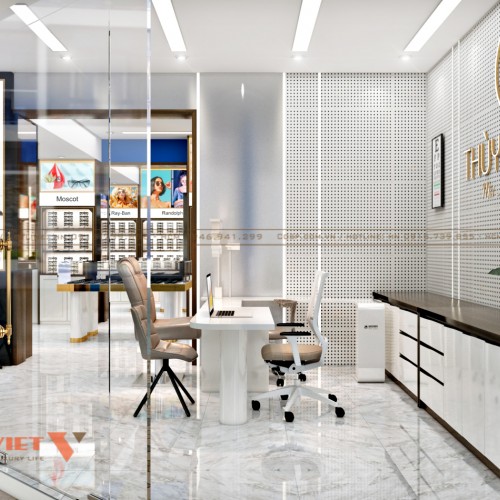 Thiết kế nội thất shop mắt kính Thùy Dương được các kiến trúc sư PenViet nghiên cứu tỉ mỉ để tạo nên bản sắc thương hiệu mạnh mẽ cho chủ đầu tư. Bố cục chuyển tiếp mượt mà giữa các khu vực nhưng có sự đồng nhất tạo dấu ấn riêng. Nếu bạn còn bất cứ ý tưởng nào muốn thực hiện, hãy liên hệ PenViet ngay hôm nay.