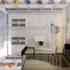 Toàn bộ không gian được chiếu sáng bằng hệ thống đèn trần âm, đèn led hắt khe và ánh sáng trong tủ. Sự phối hợp giữa ánh sáng trắng trung tính và ánh sáng vàng nhẹ giúp tôn lên vẻ đẹp thật của các sản phẩm kính, đồng thời tạo không gian ấm áp, dễ chịu.