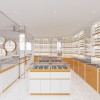 Không gian trưng bày sản phẩm kính chiếm phần lớn diện tích của cửa hàng. Các tủ kính được thiết kế mở, bố trí dọc theo hai bên tường và dãy trung tâm, giúp tối ưu khả năng tiếp cận sản phẩm. Mặt kính trong suốt giúp khách hàng dễ dàng quan sát sản phẩm từ nhiều góc độ. Đèn LED chiếu sáng bên trong mỗi hộc tủ giúp làm nổi bật sản phẩm, tạo hiệu ứng lung linh và cao cấp.