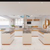 Toàn bộ nội thất được hoàn thiện với chất liệu dễ vệ sinh như gỗ MDF cốt xanh, kính cường lực, đá giả marble và nhựa phủ bóng cao cấp. Sàn lát gạch men vân đá sang trọng, chống trơn trượt. Quầy kệ được bo tròn các góc, đảm bảo an toàn khi di chuyển, đặc biệt với trẻ em.