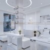 Vòng đèn trần trang trí tạo điểm nhấn thị giác, khiến không gian có chiều sâu. Nhờ cách phối hợp ánh sáng hợp lý, tiệm trở nên sang, sạch và chuyên nghiệp từ mọi góc nhìn.
