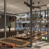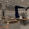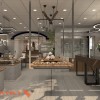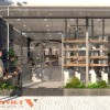 Kệ trưng bày sát kính được bố trí dọc theo mặt tiền với thiết kế tối giản, sử dụng gỗ và kim loại đan xen, tạo hiệu ứng thị giác mạnh mẽ nhưng vẫn giữ được sự thanh lịch. Cây xanh và ánh sáng tự nhiên hòa quyện, tạo thành không gian trưng bày đậm chất thẩm mỹ, gợi mời khách hàng dừng chân.