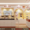 Tone màu chủ đạo của shop trưng bày mỹ phẩm là trắng kết hợp với vàng inox tạo nên một không gian sang trọng và lộng lẫy.