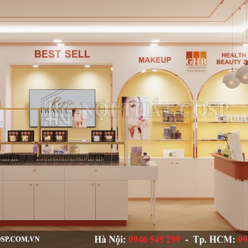 Thiết Kế Nội Thất Shop Trưng Bày Mỹ Phẩm Chức Năng – Văn Quán