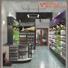 Tại vị trí trung tâm, chúng tôi đặt hệ tủ gỗ MDF phủ Melamine, khung thép hộp sơn tĩnh điện để gia tăng diện tích sử dụng, trưng bày các mặt hàng mới được nhập khẩu về cửa tiệm gây sự chú ý cho khách hàng. Hệ tủ này cũng tạo điểm nhấn giúp không gian không bị trống trải mà vẫn đảm bảo lối đi thông thoáng dù tiệm có diện tích không quá lớn.