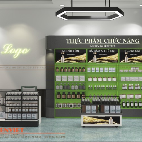 Thiết kế shop thực phẩm chức năng, Thiết kế cửa hàng thực phẩm chức năng, Thiết kế shop mỹ phẩm, Thiết kế shop, Thiết kế nội thất shop